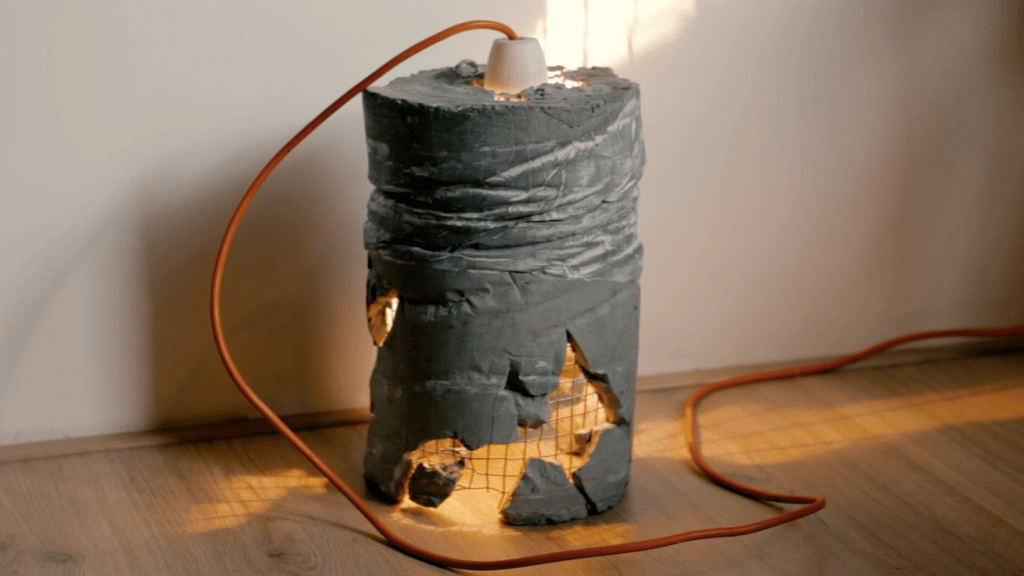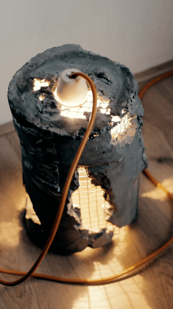 Lamp made from a reclaimed cable and fittingLamp made from a reclaimed cable and fittingLamp made from a reclaimed cable and fittingStool made from a reclaimed chairStool made from a reclaimed chairStool made from a reclaimed chairPlantpot made from a piece of treebarkPlantpot made from a piece of treebarkPlantpot made from apiece of treebarkSidetable made from a reclaimed bedframeSidetable made from a reclaimed bedframeSidetable made from a reclaimed bedframe